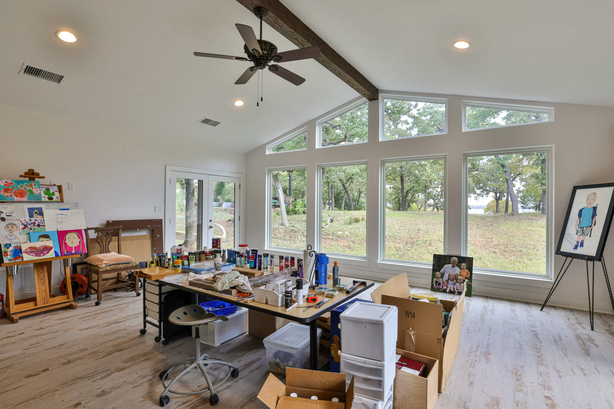 This project also included a quaint and refreshing dethatched Art Room addition with cathedral ceiling, nestled in the trees overlooking the lake. A new two-car garage addition with storage closets was also added to the existing garage. Special permission and critical guidelines were required by the Corps of Engineers and local city building authorities for the Kitchen and Patio additions at the existing residence and the Art Room and Garage Additions at the existing dethatched structure. These legal requirements created significant design, engineering, and building challenges which were fulfilled to the satisfaction of all interested parties.