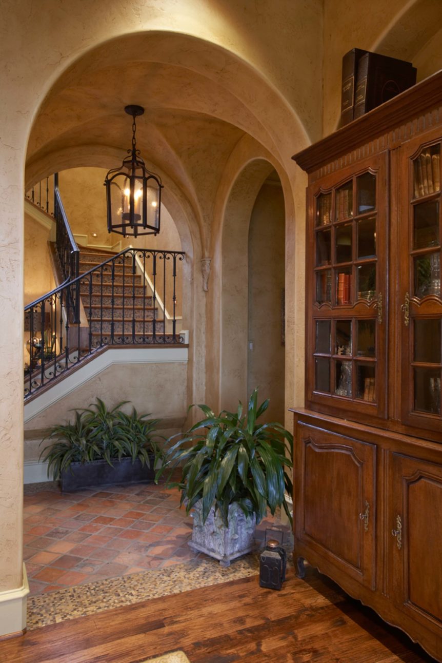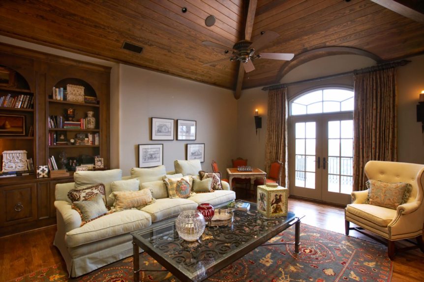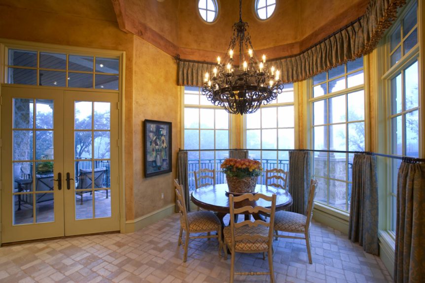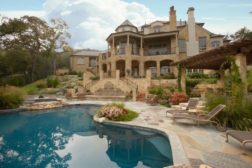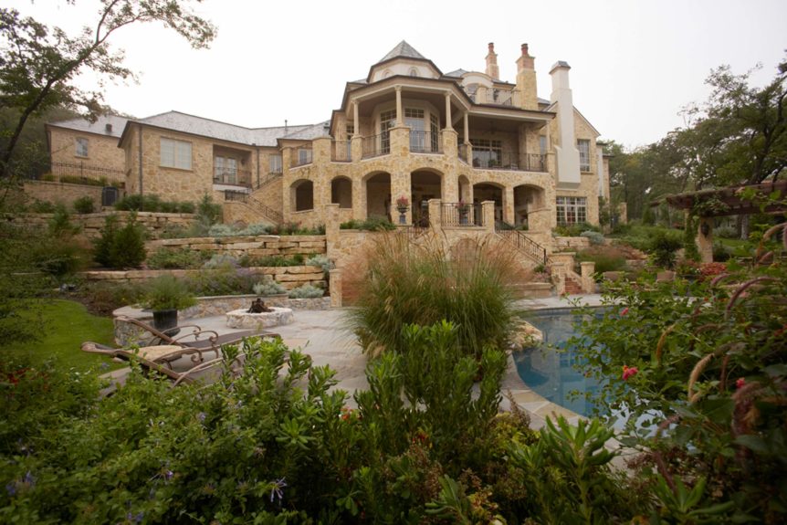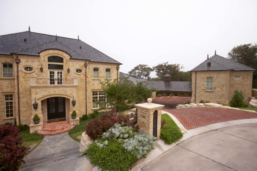 Builders Ron and Fred Parker and Building Designer Richard Berry worked with these clients to design and build this fabulous property in River Crest overlooking a beautiful view of Fort Worth. The 90 ft. vertical drop from the curb to the rear property created a challenging but incredible opportunity for the Fred Parker Design Group, the engineers, and building team. The French Country architecture was enhanced with elaborate stone and cast stone details both interior and exterior of the home. The breath-taking view is evident from the moment you walk through the door to the elegant two-story foyer. The clients worked with Interior Designer Tad Watts with Domain XCIV Interiors to create a unique and beautiful home with special finishes, tile details, and other personal touches throughout this estate. The walk out basement includes a large wine cellar, play room, media room, and exercise room.