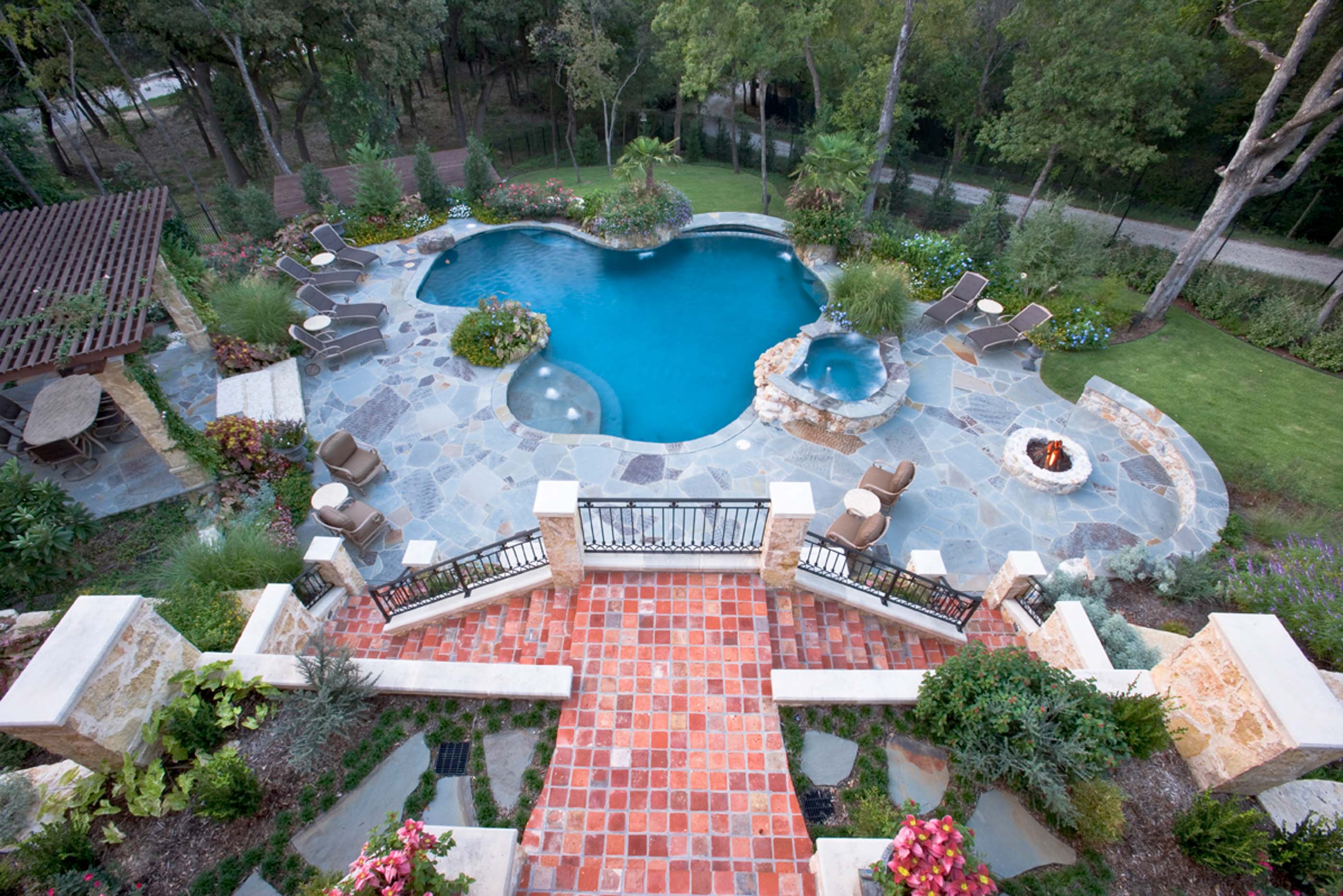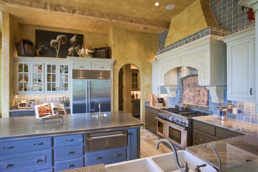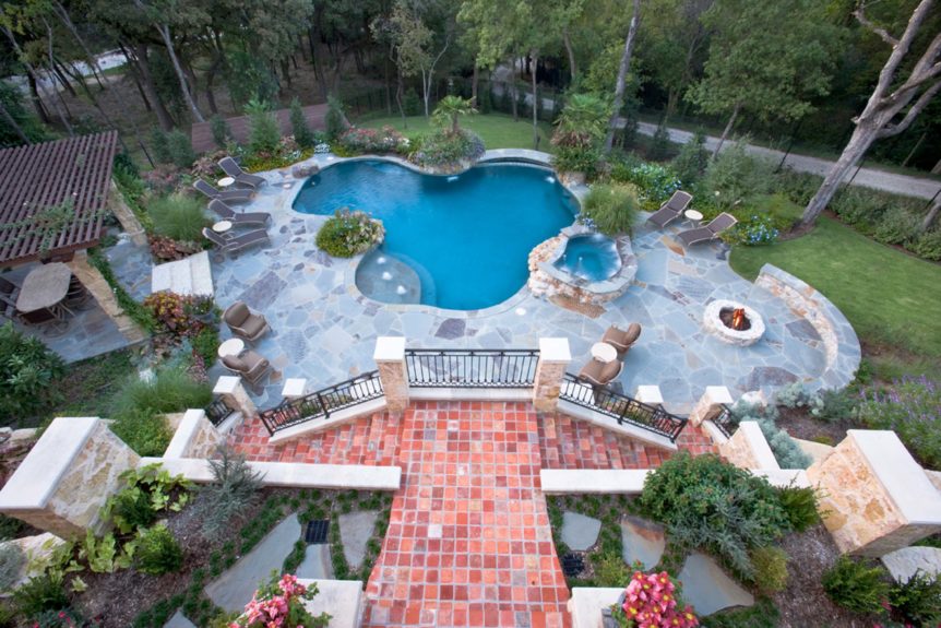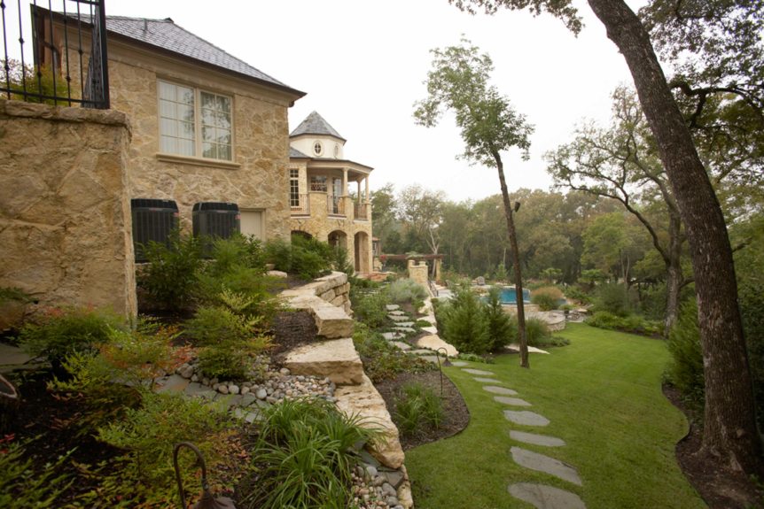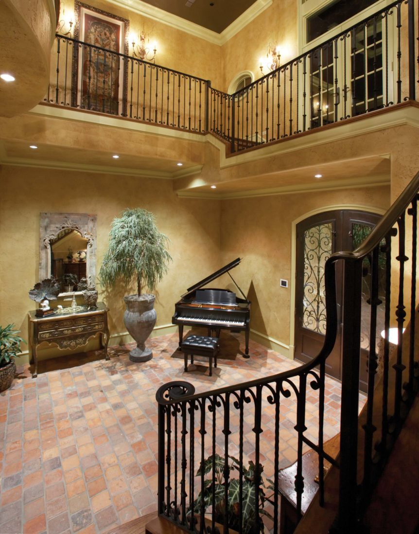 Builders Ron and Fred Parker and Building Designer Richard Berry worked with these clients to design and build this fabulous property in River Crest overlooking a beautiful view of Fort Worth. The 90 ft. vertical drop from the curb to the rear property created a challenging but incredible opportunity for the Fred Parker Design Group, the engineers, and building team. The French Country architecture was enhanced with elaborate stone and cast stone details both interior and exterior of the home. The breath-taking view is evident from the moment you walk through the door to the elegant two-story foyer. The clients worked with Interior Designer Tad Watts with Domain XCIV Interiors to create a unique and beautiful home with special finishes, tile details, and other personal touches throughout this estate. The walk out basement includes a large wine cellar, play room, media room, and exercise room.