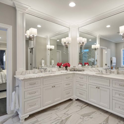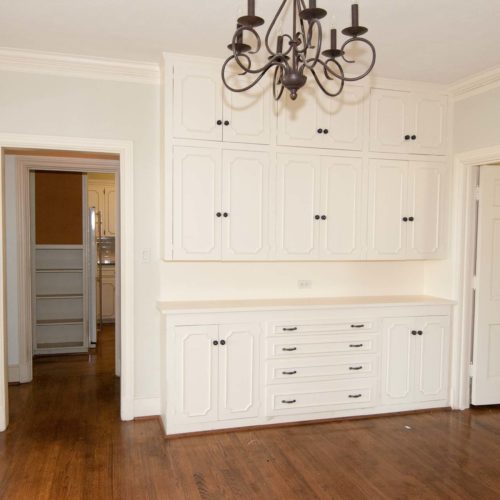 AIBD Building Designer and Custom Builder, Ron Parker utilized the original blueprints in redesigning this home to create an open concept between rooms, as well as to expand important areas such as the kitchen, study, master bath, and master closet. New Andersen windows and French Doors were properly placed to captivate the incredible view of the property as well as to provide for appropriate furniture placement. This home is appointed with molded archways, stately millwork and cabinetry in keeping with the historical charm of the home. Careful consideration was given to the original design concepts including making knives to run existing molding patterns. Ron collaborated with the client’s interior designer Alli Walker who provided great inspiration from Houzz.com in the design process, as well as coordinated the material selections, colors, and furnishings.