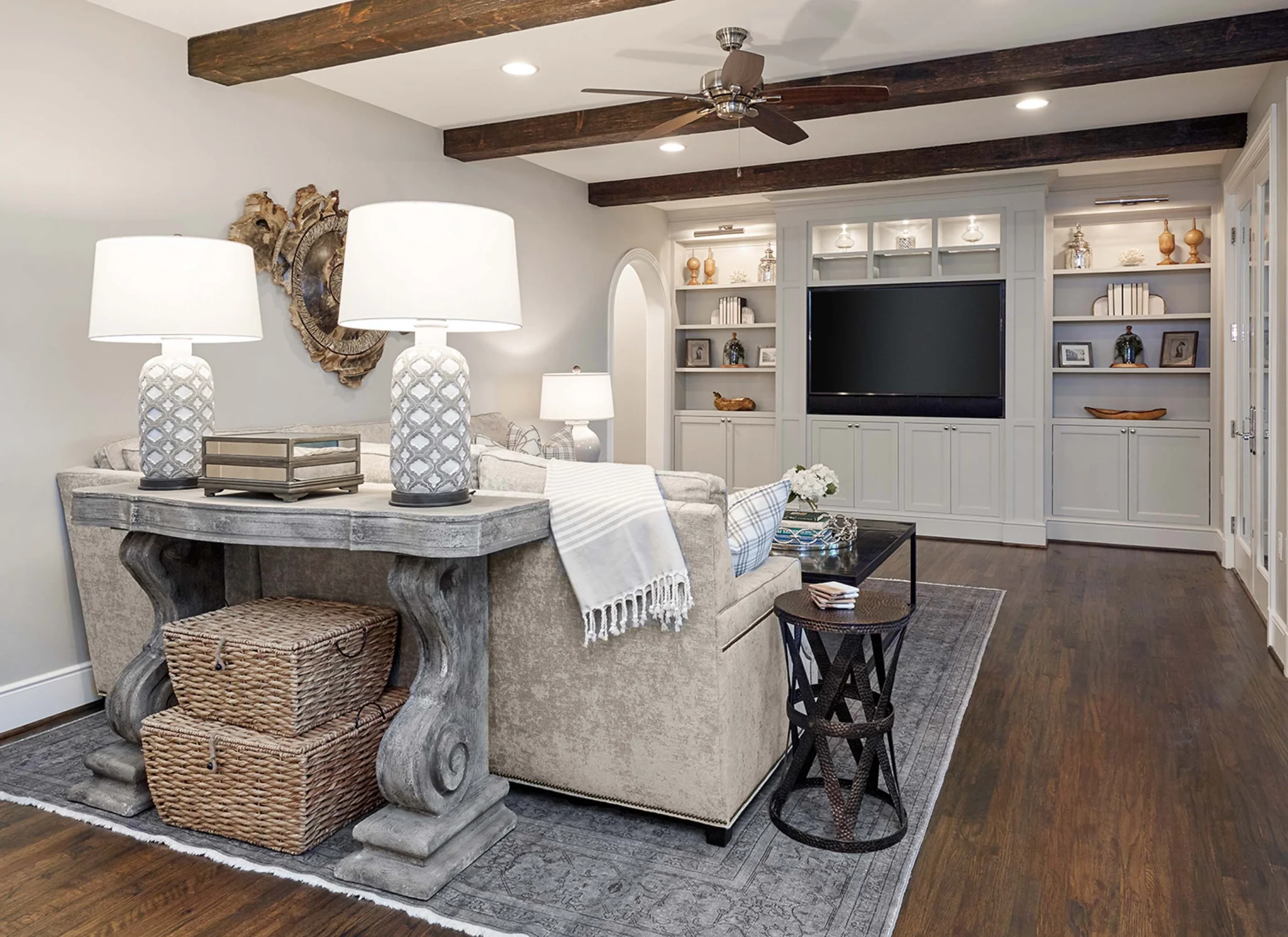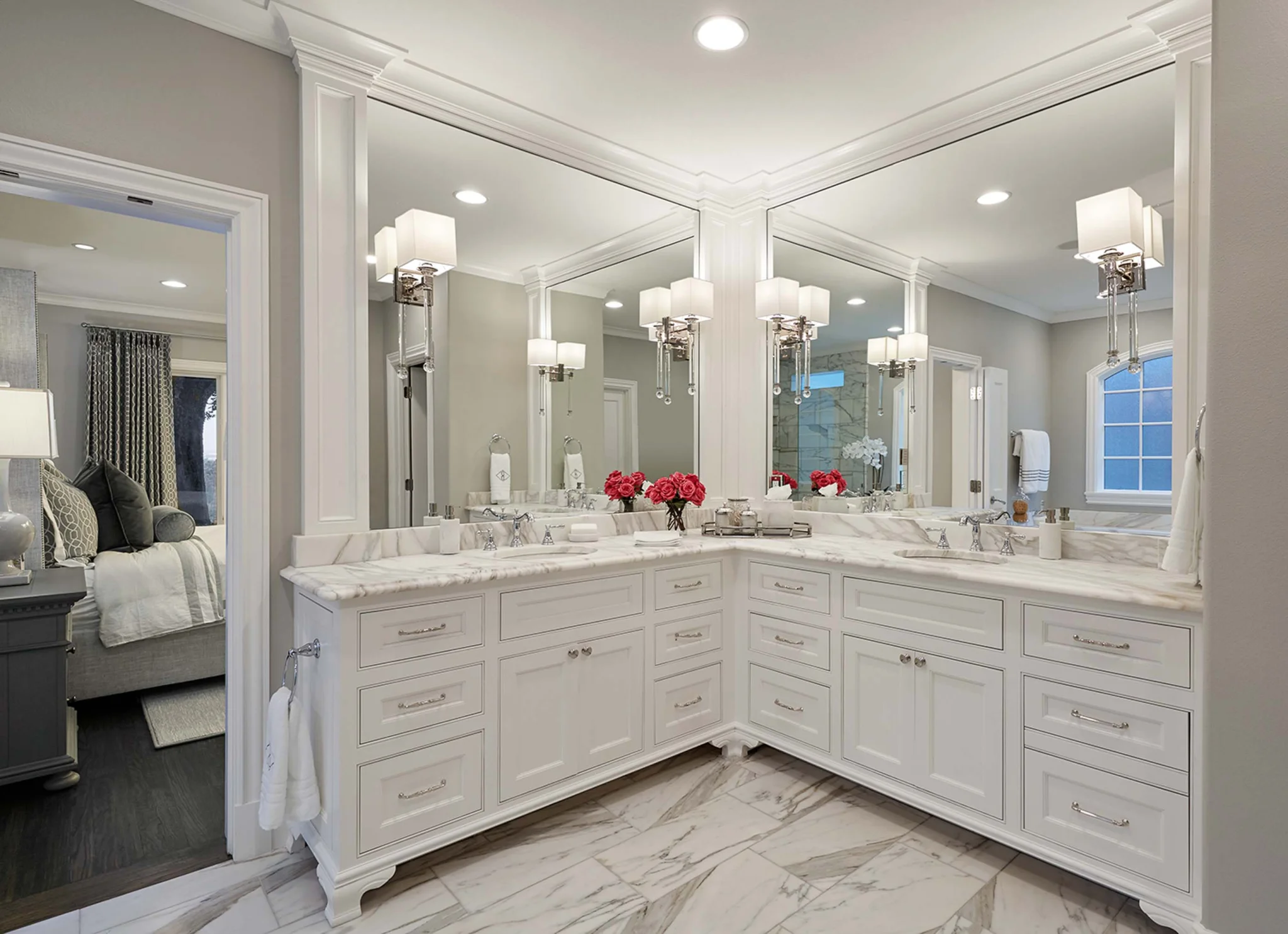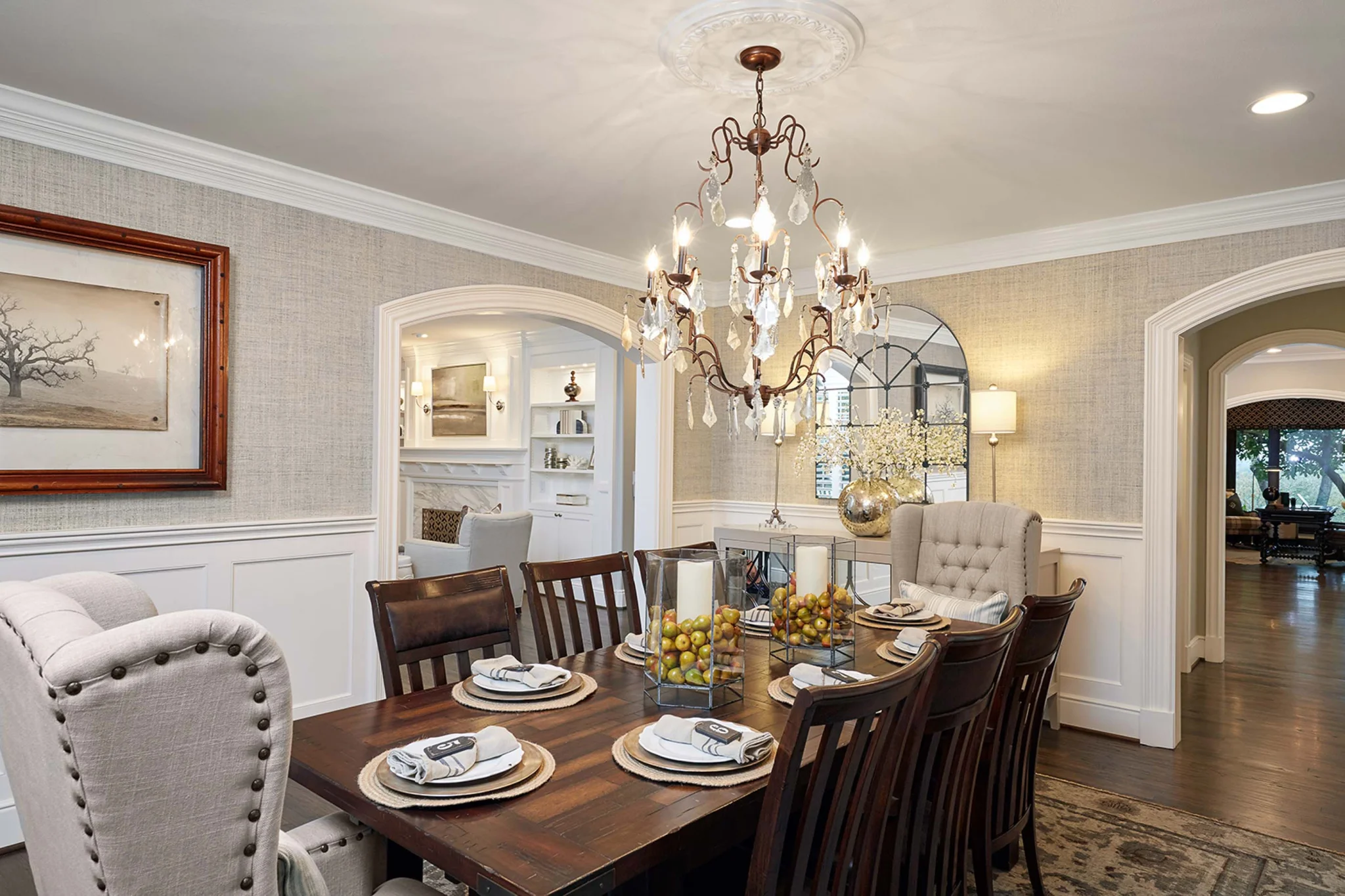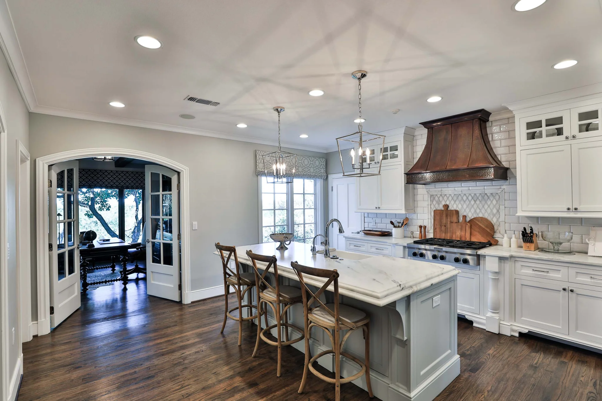 AIBD Building Designer and Custom Builder, Ron Parker utilized the original blueprints in redesigning this home to create an open concept between rooms, as well as to expand important areas such as the kitchen, study, master bath, and master closet. New Andersen windows and French Doors were properly placed to captivate the incredible view of the property as well as to provide for appropriate furniture placement. This home is appointed with molded archways, stately millwork and cabinetry in keeping with the historical charm of the home. Careful consideration was given to the original design concepts including making knives to run existing molding patterns. Ron collaborated with the client’s interior designer Alli Walker who provided great inspiration from Houzz.com in the design process, as well as coordinated the material selections, colors, and furnishings.