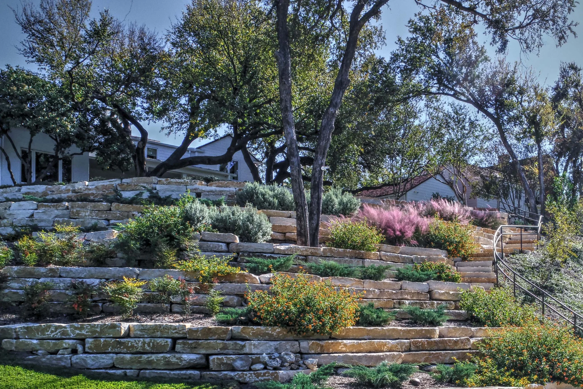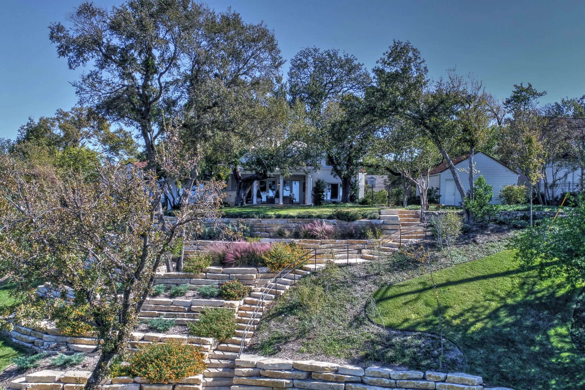 An old dilapidated stone retaining wall was torn down and redesigned with new terraced retaining walls and landscaping with stone steps leading to the rear yard. The overhead power lines were replaced with underground wiring to enhance the magnificent view. Complete landscaping and fencing work is still in process.