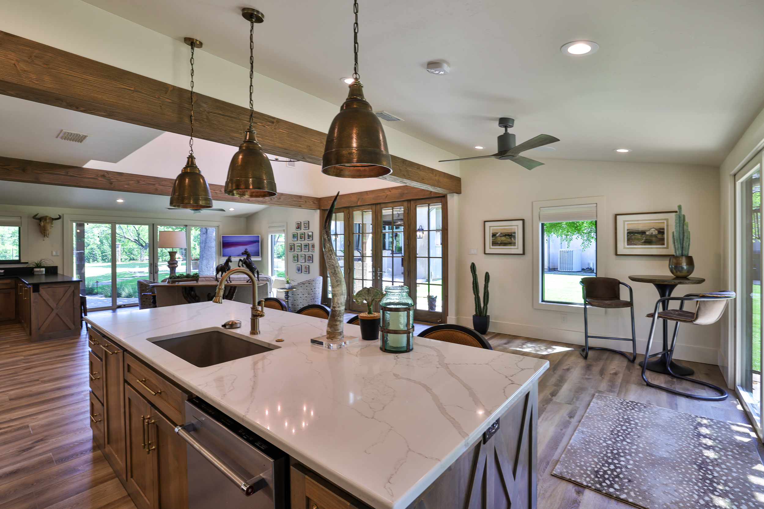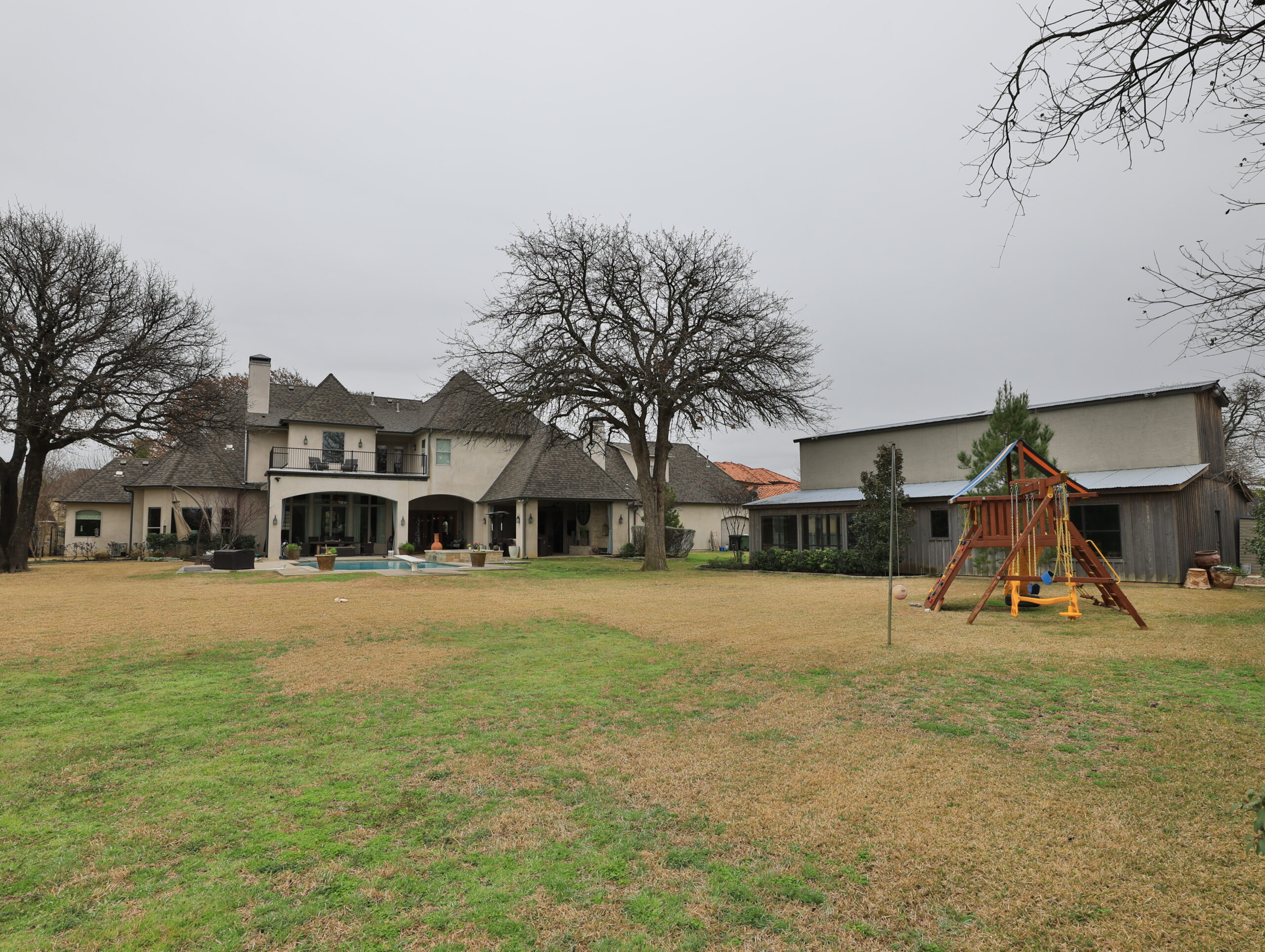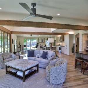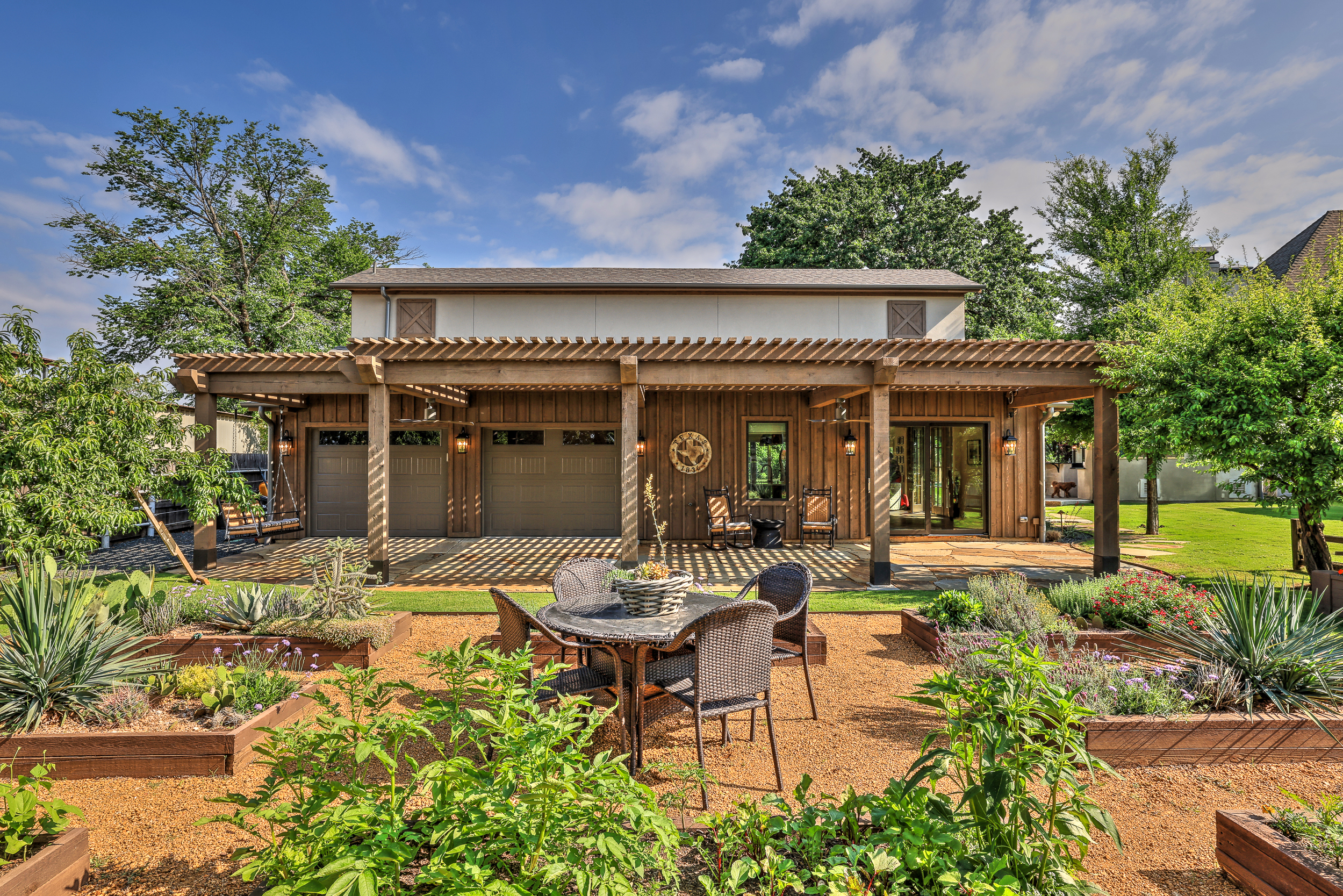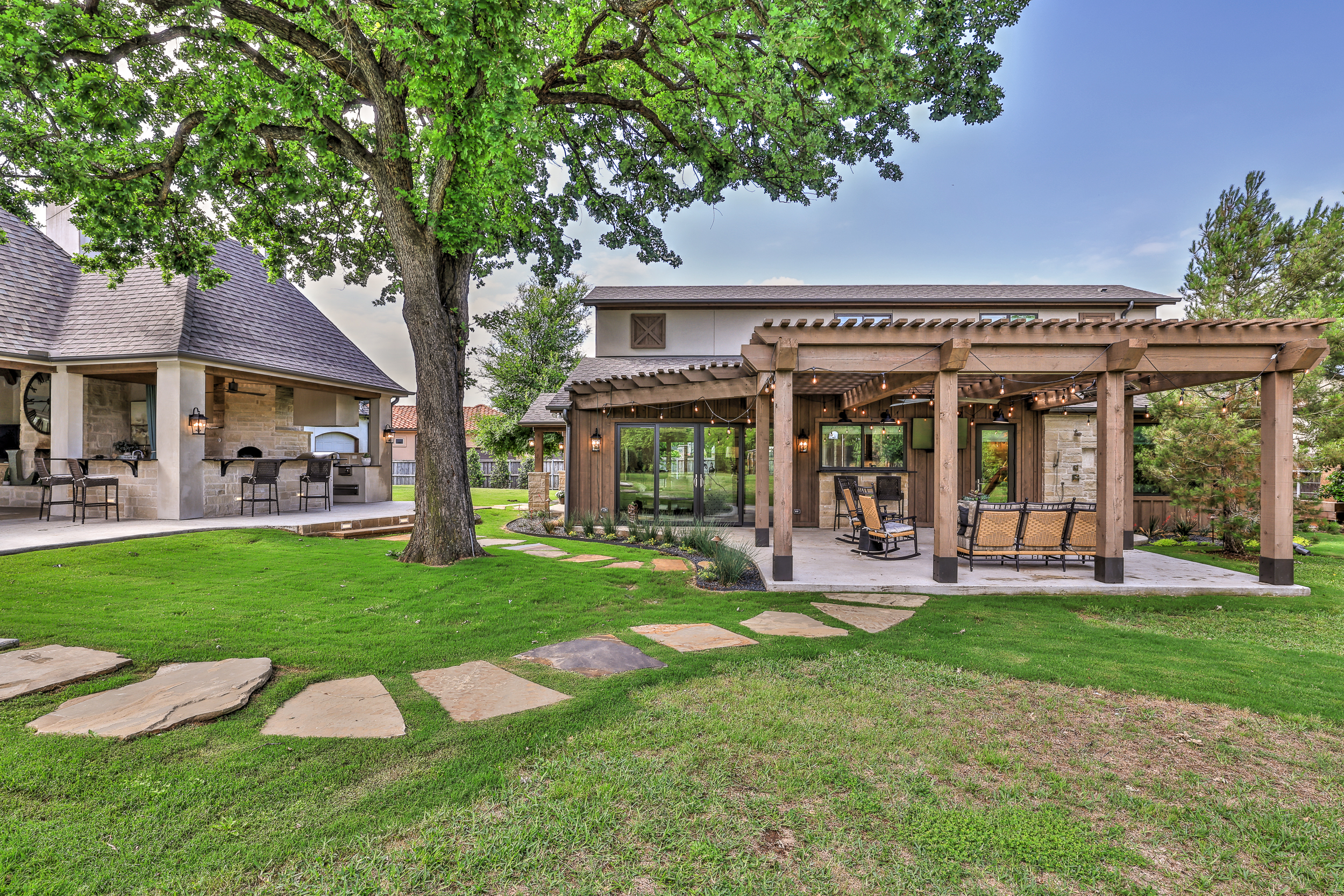 This beautiful courtyard renovation was made possible by the desires for change by these clients. They had built the house originally in the 70’s from a plan they used in California on a previous home they had built. The clients stated they loved their home but were never able to utilize the courtyard for many parts of the year due to the extreme Texas climate. AIBD Building Designer Ron Parker redesigned the space utilizing a series of Velux glass skylights and open stucco archways. Through significant structural engineering and beam placement, this phenomenal open concept courtyard was created that not only blends with the existing home, but enhances it as well. Ron and his wife, Lila were watching a movie when he noticed for a brief second a beautiful contemporary entry door from an historic building in the film. Ron utilized this inspiration for the design of the gorgeous contemporary iron and glass doors and arched transom, which became the focal point for this contemporary home. This project also included replacing the windows on the front of the residence and replacing the wood bands with new stucco bands that blended with the home. The stucco was re-plastered for all the modifications, the tile roof was replaced, and new AC systems were installed to compensate for the additional space. The sidewalk was replaced with pattern concrete “stone faced” stained concrete and the yard was completely re-landscaped.