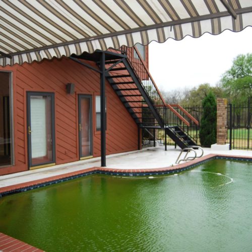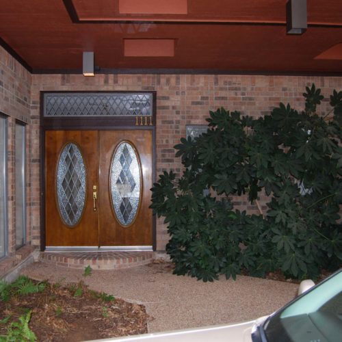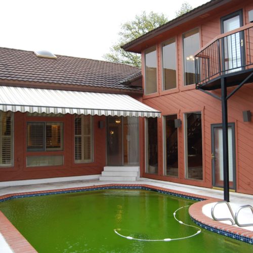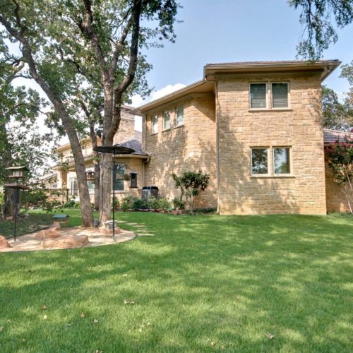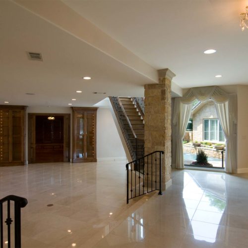 A two-story master bedroom and bathroom wing was designed and built which included a cast stone fireplace mantel, inlaid marble floor, walk through shower, dressing areas and large master closets with built in wardrobe cabinets. The grounds were completely re-landscaped, with stone courtyard and walls and beautiful elevated planting area, beautiful water features, and sandstone patios. Tasteful landscape lighting was designed to create a relaxing but enchanting atmosphere.