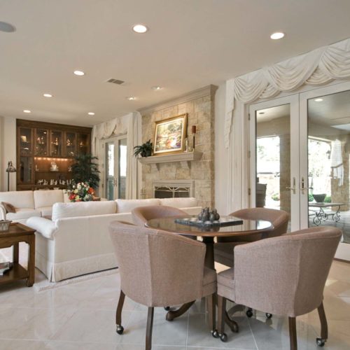 This is an incredible renovation and whole house remodeling project. The original home was built on a two lot property on a prestigious golf course with beautiful trees and “garden-like” setting. This was the clients’ second home to be built or remodeled by the Fred Parker Company. Fred and Ron Parker lead the building and design along with interior designer, Lila Parker ASID to completely renovate and redesign the existing home. This included enlarging the kitchen, opening to the living area which incorporated an incredible view of the swimming pool, fountains, and golf course. All bathrooms, windows, insulation, and AC systems were upgraded with state of the art products and technology.