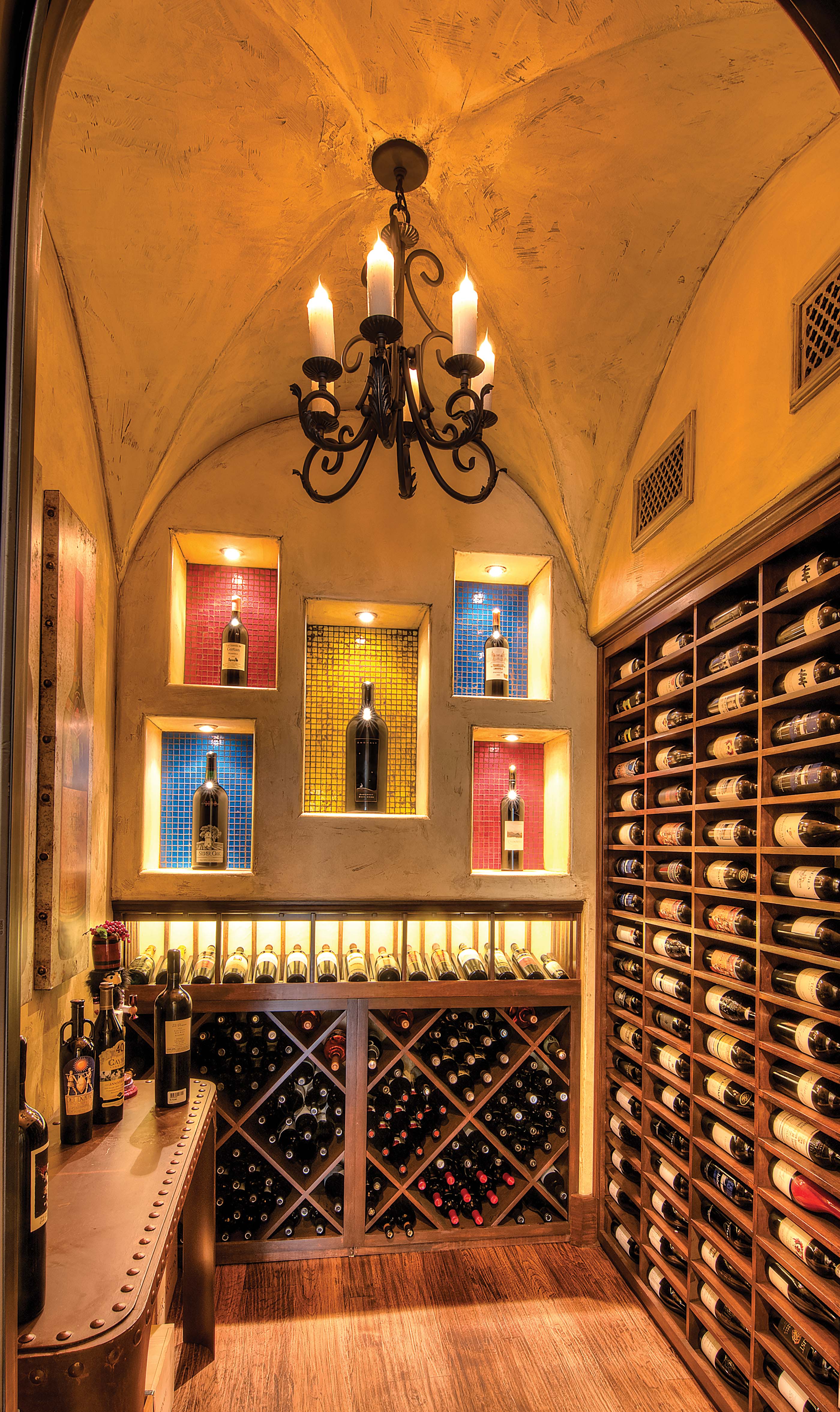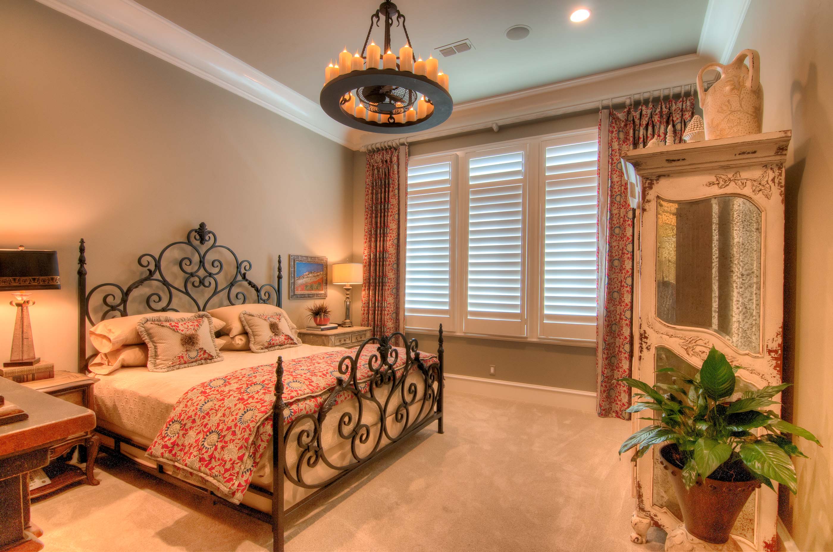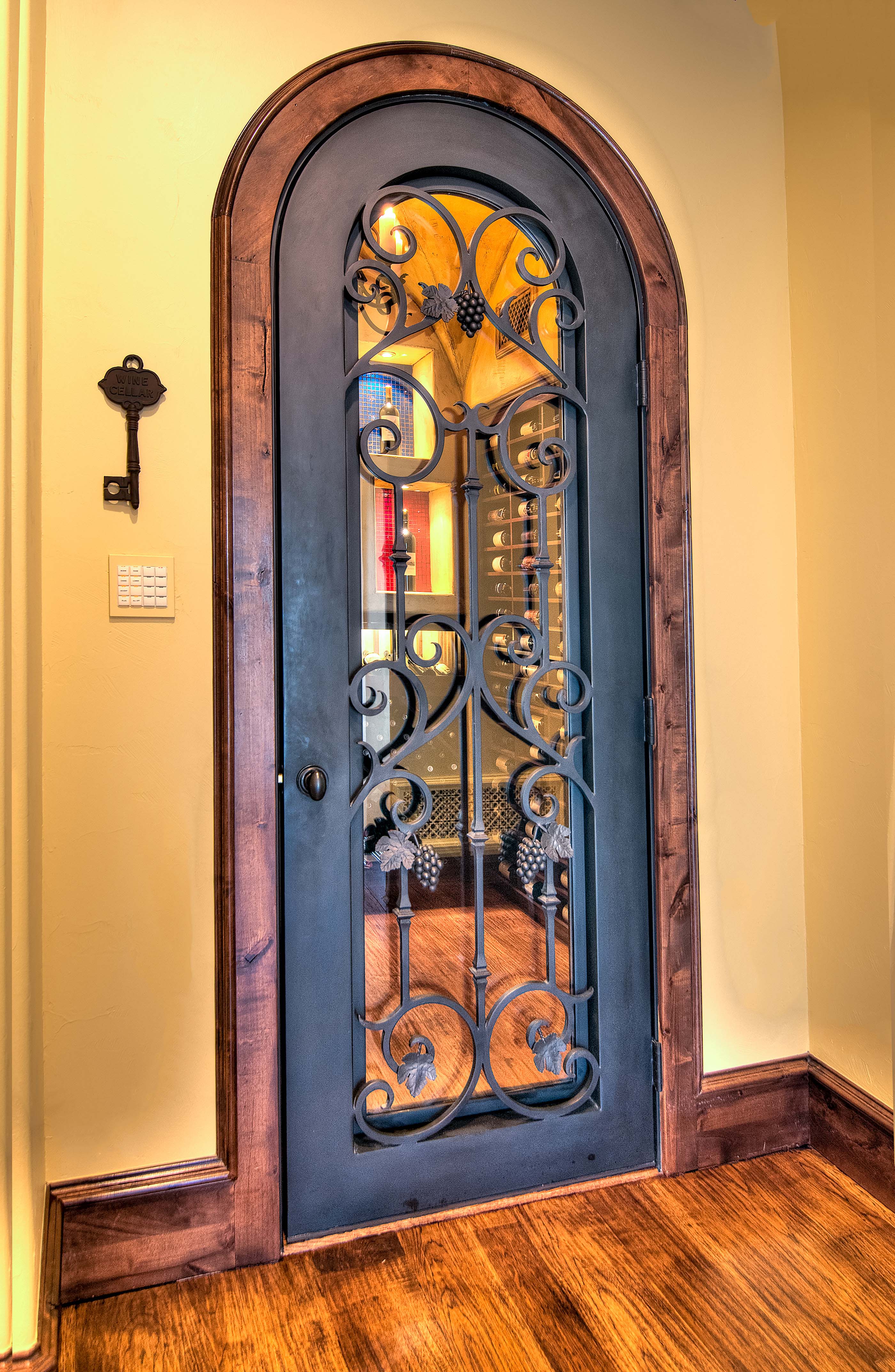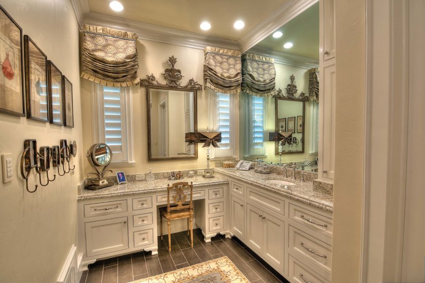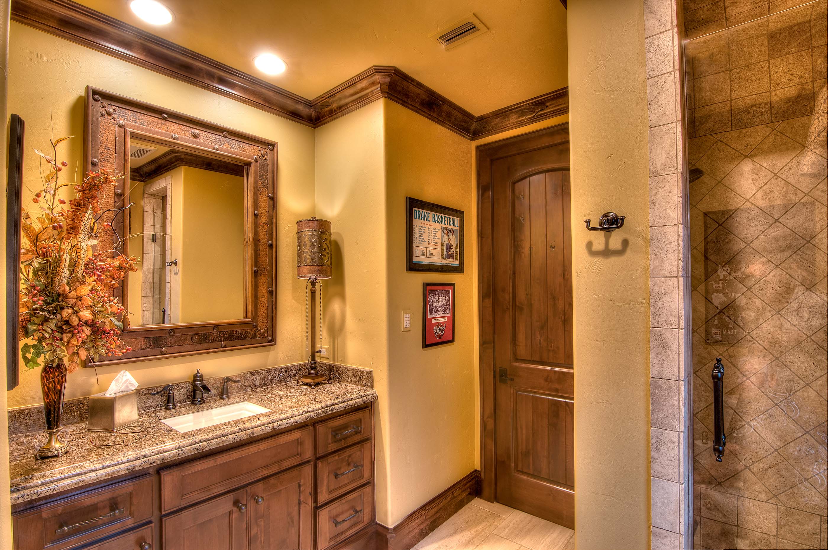 Builders Ron and Fred Parker worked with this client, her architect, and her interior designer to create this incredible estate. This was the second large custom home designed and built for this client which features elaborate cast stone details, copper and tile roofing, limestone and stucco veneer, and custom wood windows. The interior is large and spacious with groin vault ceilings, tile inlaid archers and floors, and hickory hand-scraped floors, stained wood beams, and a catering kitchen and wine room.